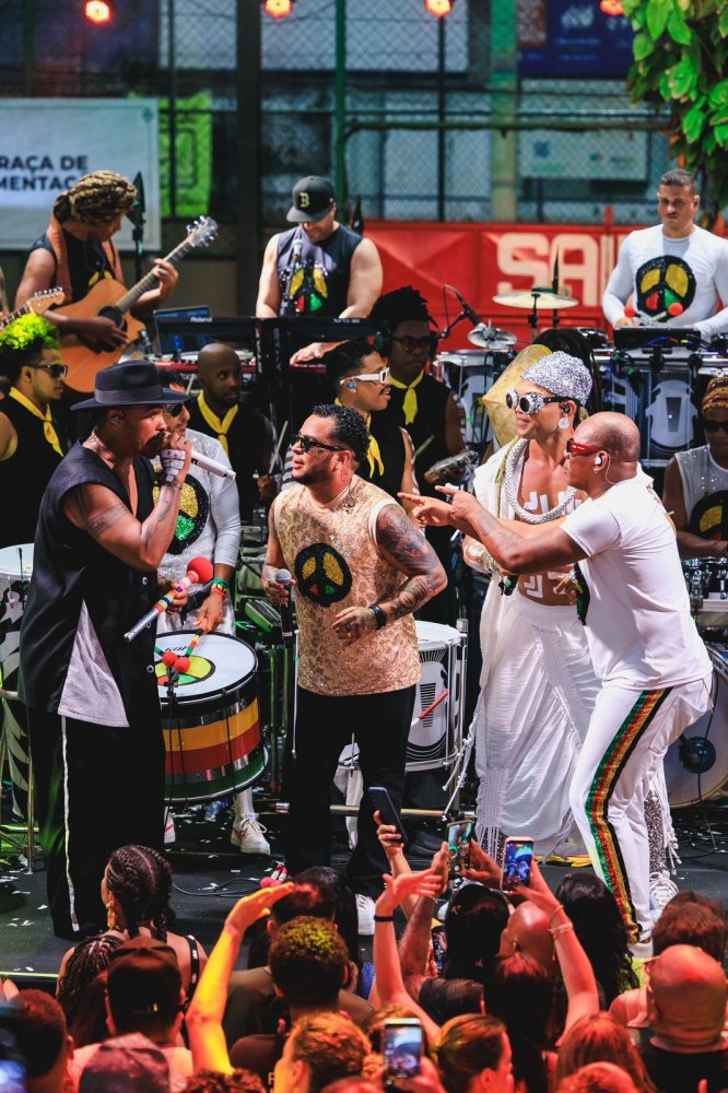 A noite ganhou ainda mais força com participações especiais que reforçaram o caráter simbólico do ensaio. A Banda Eva levou o público ao delírio, enquanto o anfitrião do espaço, Carlinhos Brown, subiu ao palco com sua potência criativa e ancestral. O Olodum também marcou presença, transformando o Candyall em um verdadeiro caldeirão cultural. Para completar o encontro, Francisco Gil, vocalista do Gilsons, dividiu o palco com os anfitriões.