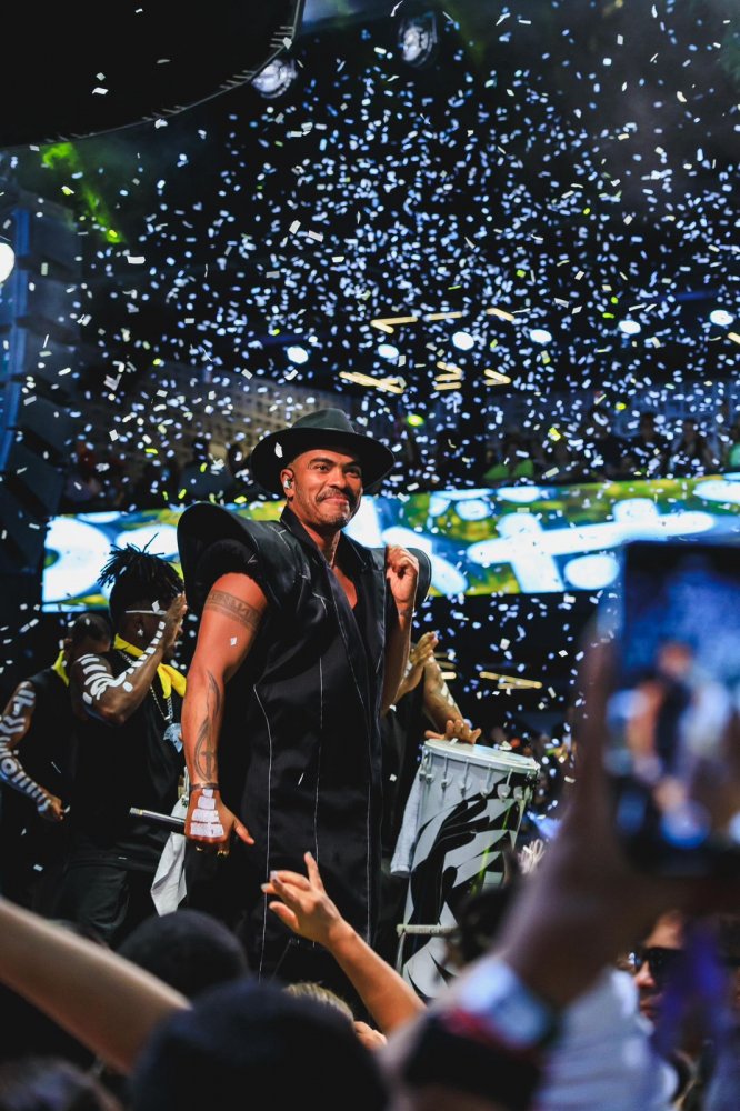 A noite ganhou ainda mais força com participações especiais que reforçaram o caráter simbólico do ensaio. A Banda Eva levou o público ao delírio, enquanto o anfitrião do espaço, Carlinhos Brown, subiu ao palco com sua potência criativa e ancestral. O Olodum também marcou presença, transformando o Candyall em um verdadeiro caldeirão cultural. Para completar o encontro, Francisco Gil, vocalista do Gilsons, dividiu o palco com os anfitriões.